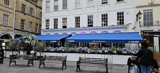 Dining for two on a Thursday evening. Appetisers- We started of with a breaded prawn mini bite. The prawns were succulent yet crisp. They were however slightly on the small side and there were only four. The came with a large (quite excessive) quantity of a sweet mayo like sauce and a grilled lemon piece - much appreciated. This was followed by the bread basket (4 items) of which the best was a wholemeal seeded roll. Drinks- The person I was dining with chose a glass of chardonnay while I chose a glass of mango juice and we shared a bottle of sparkling water. The mango juice was nice and had plenty of ice. Main- We both chose the chicken skewer, the skewer itself was of good size and had chunks of chicken with pepper slices in between. Absolutely delicious. It was accompanied with a large portion of chips (perhaps a little excessive). These chips were perfectly crisp though sometimes a little stubby. Also included was a salad with a dressing on top - all very nice though perhaps a little more salad would be appreciated. Dessert- I chose to have the creme brulee. All expectations were exceeded. It came in a pan and consisted of a decadent and sweet custard topped with a thing crust of caramelised sugar. Atop this sat some strawberries and short bread. My friend had the mango Charlotte. It was more of a sponge cake topped with a cream layer and then mango sauce. Raspberry and meringue pieces served as a garnish round the plate. It was enjoyed. Service- The service was this establishment's shining star. The waiters were smartly dressed, polite and gentile. No fault could be found. Conclusion- The square grill brasserie is a fine establishment with great food and lovely staff. Keep in wind though it is a little pricey. 5/5...