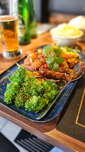 The Thai-Style fish, served steaming in a metal dish with lime wedges and herbs, was fresh and zesty, with the citrus and chili adding a vibrant kick.