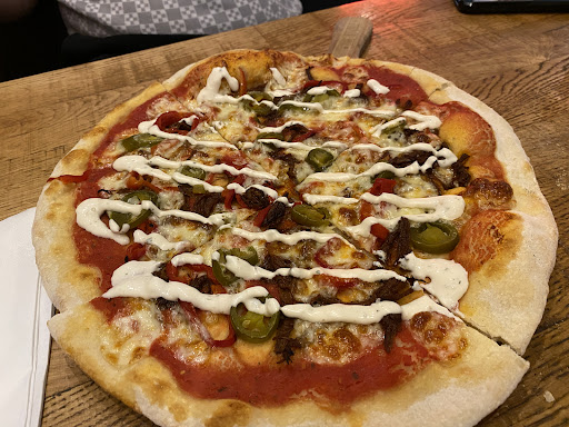 Read moreGreat food, filthy toilets! So I'm not sure how many stars to give? We had a late lunch here, it was the first time I've eaten there and it will be the last. The food was good, we all had different pizza, I loved the names of the pizzas which had been thought about and definitely brought a smile to all of our faces. I had a Mushroom Magic and it was really tasty. I took half of it home for my lunch the following day as I couldn't eat it all, they provided a take away box for my leftovers. Drinks, we all ordered draught lager, they brought 1 of the 3 we ordered over and explained they'd run out of that lager and they suggested an alternative, so we ordered 2 of those. They came back with 1 lager and again said they'd run out of the alternative, could they now suggest another which we went for. It took a very downward direction when I went to the loo. I used the accessible/disabled toilet, it was filthy! I don't mean someone earlier that day had made a mess in the toilet, I mean it was grime that had accumulated from a long time of not being cleaned. The tiles were supposed to be white so it was very clear to see how dirty they were. The toilet brush looked like it should have come with a hasmat suit if it required using. The emergency pull cord handle was so dirty that I think anyone who was in need of pulling it would seriously have thought twice and considered which posed a greater risk, potentially lying on the floor for hours until discovered or the risk of contracting goodness knows what disease by pulling the cord. I know that a lot of places have relaxed their cleaning regimes as we begin to live with covid but that was months of dust and dirt on the pull chord. Although the food was good I always feel that if a place can't be bothered to clean their toilets properly they can't be bothered to clean their kitchen properly either. If I had used the loo before we'd eaten I would have left...
