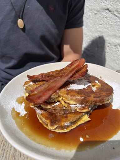 Starting with the highlights: the hash chorizo was a solid choice - flavourful, with a nice mix of veggies and chunks of chorizo. It would’ve been even better with a slice of bread to round it out. We were really hoping to try the Marsala French toast (which came recommended in other reviews), but it was no longer available - a bit of a letdown. We went with the regular French toast with maple syrup and bacon instead. It was very sweet and felt like it needed something to cut through the sugar. The portion size was solid.