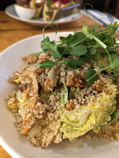 When I planned to come to Bath for the weekend, a birthday treat for my partner there were two reasons, the hot springs and this eatery. I discovered it 4/5 years ago when my brother was at uni here and have returned from the midlands at any opportunity, eagerly anticipating the day they release a recipe book! Purchased. Thank you. Service is always warm and attentive and even whilst they ensure to attend every need there is no feeling of them being overbearing, a delicate balance achieved. We had mushroom satay skewers and chickpea chips to start. The chips felt like the healthiest and tastiest surprise but the skewers were quickly addictive as well. We were cleared and mains arrived smoothly with just a few moments to take in the first experience. Tacos for him. Truly delicious, soft tacos, lots of flavour, texture and colour to take in and a beautiful salsa to accompany. I had a caesar salad, loaded with flavour and one I'm very glad is in the recipe book for me to pack up and take for lunch at work bath home. I was sorry the tumeric and ginger shot was out of stock but we had chari-tea instead and what a lovely brand. A bottled drink with only three ingredients, I love that the green rocket is supporting other businesses with healthy ethos. We were primarily served by a gentleman who when we spoke to him about allergies was sure to give us all the information we required. Once we realised we were probably going to have to compromise a little on having some soy (fortunately it is not life or death) we told him not to bother checking again but he did anyway. This was a lovely touch, we were not an inconvenience it felt but an adventure for him. Afterwards he asked how we felt after the food to be sure the experience was comfortable. Thank you to him personally and all the team that bring the experience together. We will be back whenever we...