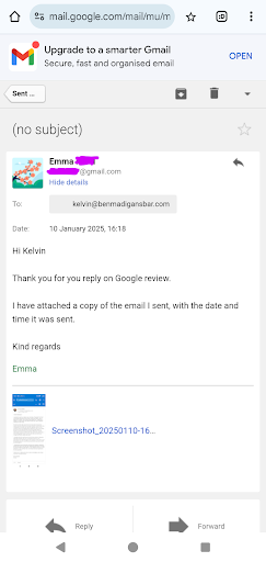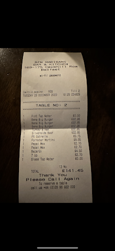 Ā Ā Ā Read moreVery sad to leave this review as I am a local and I have been to Benqrogans so many times and had great meals and experiences there. I was so excited when Ben madigans opened to have somewhere so nice local to us but I was in recently and unfortunately I did not have the same experience myself and my partner went in on a Sunday evening for food, we were seated and then the server took half an hour to come back to us to take our order ( it was not busy, there was us and three other tables being used a few people sitting at the bar) after this she out the order in our food came out about 20 minutes later after this she took our plates and we waited for the main....and we waited for a long time we were waiting between our starter and main for almost an hour without any staff approaching us to update us or check in until I got up and asked them politely as I hate when people are rude to staff and I am never one of those people. They assured us the food would be ready in 15minutes at this point we had been waiting 35 minutes the waitress who was dealing with us would not look in our direction she was up at the bar talking to a woman to cake in with a child who was not eating or drinking in the restaurant or bar while there were tables and people waiting for food that was not coming. This was not just us the two tables opposite us also were becoming inpatient. We waited the 15 minutes, then 20, and then 30 at this point we got to the 1hour mark and we had no time left to wait I had to get up and notify the staff who were all standing at an empty bar talking to eachother. They never apologised once they entire hour noone approached us at all, I am so so disappointed as I was...