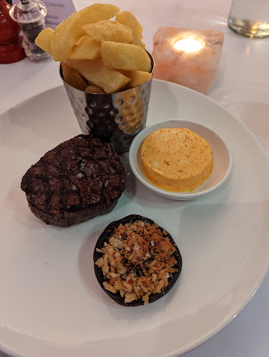 Then you pay £40 for a steak and get a mouthful of salt. Not "oh this is a little salty, the chef must has just mis-seasoned it". Not "fine dining" salty. This was a steak that tasted like a salt-lick or salt block. 3 out of 5 of my party experienced the exact same issue. We didn't order "Salt-Aged Delmonico" steak, which you expect to be salty, we ordered "Grass-fed Fillet" and "Dry-aged Ribeye".