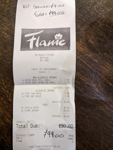 I recently had the worst restaurant experience I have ever encountered whist eating at “Flame” on 46 Howard Street, Belfast (I’ve worked in the hotel/restaurant/catering industry for over 30 years).