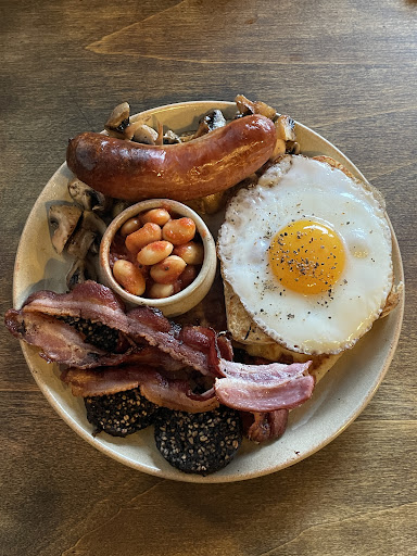 The egg was not properly cooked. Bacon snapped as soon as you went to cut. The black pudding was sliced waver thin also snapped as you went to cut. The sour dough was lovely and the mushrooms were cut so small. The overall feeling was a begrudged meal. My friend had the same experience of the breakfast bap and had to leave half of it. The total cost of breakfast was £33 not cheap for what was served up. I would have mentioned to waiter only it wouldn’t have been well received by this guy. 3 days later I feel annoyed enough to write this review. More focus on customer service and not burnt offerings is needed. I...