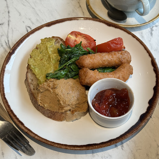 However, when it came to the food, I felt myself wishing for more. I ordered the Veggie Brunch (toasted sourdough with avocado spread and a sun-dried tomato hummus, plum tomatoes, spinach, a plant based sausage, mushrooms & chilli jam) and substituted the mushrooms for an additional sausage. At the price of £12.90, I was expecting there to be more on my plate, perhaps a second slice of toast, or maybe an optional egg for those who'd want one. In summary, while it was delicious and I thought the variety of tastes were fantastic, the pricing means that I am not overall satisfied with it.
