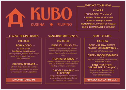 The restaurant is located inside a mall, easy to find. They have nice, tidy sitting area with soft music playing in the background making the place a good ambience for people who want to have a chill dining experience. What you see in google search for their menu is exactly what you can order when you get there. We ordered Chicken Afritada, Filipino pork bbq and Kubo Jolli Chicken. Chicken Afritada is okay. I can taste the tomato sauce but not really the chicken afritada I was expecting. I never knew that fine beans can be part of it, No carrots and no bell pepper so I guess itâs a different version, a bit oily. The tastes was okay. The Filipino pork bbq was good, it was soft and a bit charred which makes it look like real Filipino bbq. I loved the sauce perfect with the soft rice that comes with it. The Kubo Jolli Chicken was 9/10. The name of the dish is probably just a name and incomparable to Jollibee chicken because itâs totally different fried chicken. If you are expecting Jollibee like fried chicken, this is not what youâre looking for. The chicken was crispy and tasty. The sweet soy sauce makes it more delicious and perfect pair with the soft sticky rice. No dessert menu when we were there. I didnât find the lady in the counter/ receptionist warm and friendly which is opposite of what we have in our Filipino culture. She had this blunt affect which makes us feel unwelcome, not even a smile when we get in. Would be understandable if the place was busy but it was just us in the restaurant at that time. When I asked her if they serve coffee, she engaged and gave me recommendations which I find the gesture as good customer relation especially for customers who are not locals. One thing I notice as well, she flipped the âOPEN/CLOSEâ sign of the restaurant to close while we were still inside the restaurant. I find it a bit odd because we were still sitting in. Then she also pushed the bucket with mop from the inside door (kitchen place) to the actual dining area which made an impression that she wanted to close the restaurant sooner and wanted us to leave. Although words were not spoken but her actions were loud enough that we decided to just leave the restaurant. Overall experience in Kubo Belfast was just okay. Going back? Maybe, but wonât travel again just to intentionally dine in there. We normally get excited to dine in a Filipino restaurant when we travel but it wasnât the case. Please also update the photos in google so it will be more realistic to Filipinos and other customers looking for...