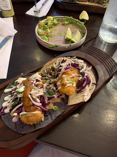 Feel bad saying anything negative but I personally have nothing positive to say. I'm giving 2 stars as I was with friends and 1 of them liked their meal. They ordered fish tacos (pictured). They said the fish was very nice. I ordered slow cooked beef tacos, but I had a very different idea in my head of what I was getting than what showed up. It was more like slow cooked brown fat and grease. Maybe we got a bad batch but as soon as I took a bite I looked over at my friend who had ordered the same and was relieved to see her face was mirroring my own confusion and disgust. She managed to eat a little more than I did, my dog got most of mine later that night. My other friend had pulled pork and in her words "it tastes like feet". Then she tried our beef and decided the pork was actually better, apparently it tasted the same but the texture wasn't as bad. I wondered if I was overreacting a bit, and thought our other friend who had ordered the fish thought we were overreacting too, so she tried a bit, chewed, and spat it out. I'm so confused by the great reviews, so I have to think maybe we just got a bad night. There was no poultry on the menu either which I thought a little odd. We felt pressured into getting the guacamole starter, which tasted good but was nothing out of this world which is how it's portrayed. It was useful for me though as I put it in my wrap instead of the grease fat. Eating wraps with grease pouring down our arms having to swallow before you taste anything or feel any food texture isn't what I had hoped...