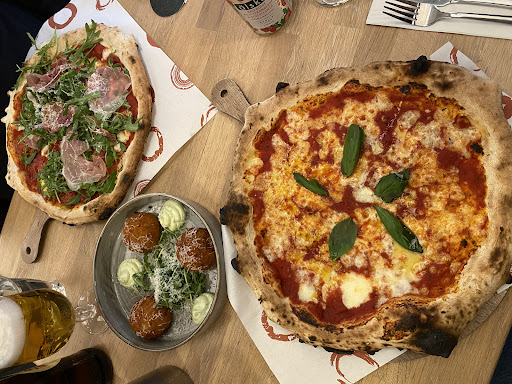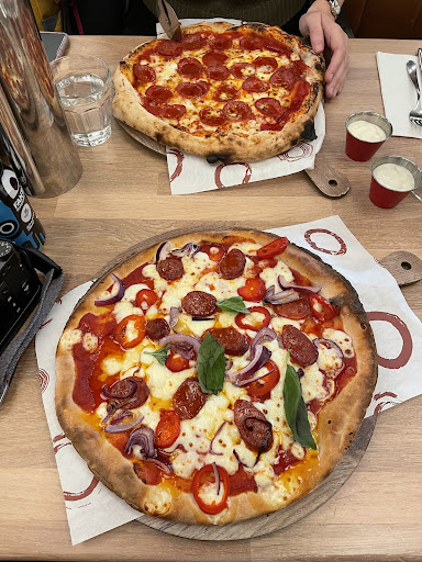 Read moreFor a large party the food was pretty good. Promptly served starters and the pizza had a nice flavour. My friend’s pizza took about 15 minutes longer than the rest coming out so they wiped it off the bill, nice touch. That waitress was lovely. However, looking back through the reviews a common theme is the rude staff and I can see why. One waitress in particular said something along the lines of “I’m serving another table but what do you want?” when asked to refill the water jugs, leaving the whole table a bit shocked. Only informed about 15 minutes before the reservation that they required the table back in exactly 2 hours. I’ll acknowledge our party came in staggered but they had the pre order and were told to go ahead and serve the food if needed. They also took about 15 minutes to clear pizza when everyone had quite obviously finished. On the clock, 8 minutes until time’s up and some of the party still finishing their dessert, the rude waitress comes over with the bill and says we have 10 minutes left. I also seen another table get rushed up to leave with one guy standing finishing his beer while hurriedly putting on his coat. They need to look at the booking system because tables are clearly squeezed in too close together time wise. When your table is dropping over £600 on dinner you expect the service to be at least polite.