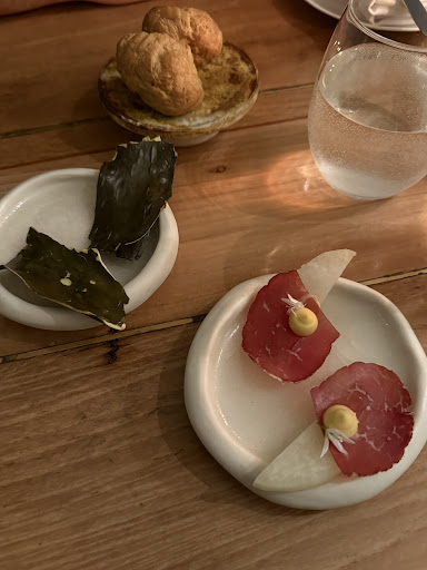 We arrived at the time of our reservation, but we were told that our table wasn’t ready and that we had to wait next door in their wine bar. We ended up waiting nearly 20 minutes. When looking at other table it seems to be their strategy to make you order from their wine bar as most tables were asked to wait. For the price of the restaurant and the length of the experience, you definitely don’t want to be waiting next door for an extra 20 minutes.