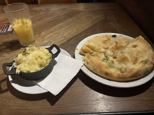 Was ignored for what seemed like a long time on entering, then waited a very long time for a drink only to be served a lukewarm tin of pepsi with a straw in it. We were a table of 9 for my nieces birthday and spent a considerable amount of money, the food is meh, the starters are overpriced and disappointing, mac and cheese is bland and overcooked, the other starters we had were similarly poor.