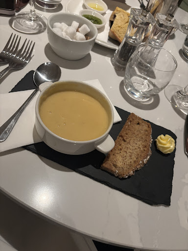 Read moreI went to riverside bar and restaurant because I am a guest at the hotel, they were busy around 5:30pm so a lovely man asked me if I wouldn’t mind to come at 7:30, I said it was not an issue! 7:26pm I got down for dinner and was promptly seated at 7:28pm, was asked if I wanted water for the table and I said yes, restaurant was a bit more quiet than earlier, I had some colleagues join my table. Two tables next to mine also got seated. Time passes and the waiter never came, it’s around 7:40pm and he goes to the other two tables and asks for their drinks and if they were ready to order, it’s now 7:51pm and still no attention to our table, we starting discussing about just leaving and going somewhere else, he comes 1/2min later and asks if we are ready? We said yes, we ordered mains and also starters afraid he would never come back to ask for our mains. Wine glasses were never removed from the table (as a waiter the wine glasses tells you that the guests are still waiting on the drinks order, unless it’s different over here) one of the glasses had lipstick on the rim and mine had a chip on it. Food came we were very pleased with the flavors, food was really good, I would totally recommend this restaurant for the food, the service could be better but other than that we...