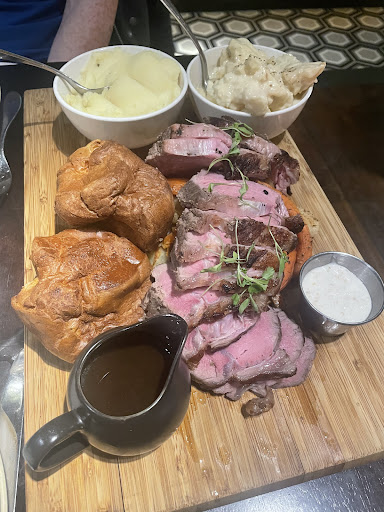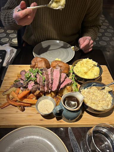 Read moreMy first ever review, I was there today for Sunday lunch, the food was nothing special, we were sat at table 41 at the top of steps with absolutely no room to move the food was served on a large board this would be a great idea if there was a big enough table, we couldn’t get the food off the board without it falling all over the place, to much piled on, the steps were very busy at my back, the issue was there was bigger tables all over the restaurant with no one at them, there was wire round two sides of our table thank god must be to stop everything hitting the ground, the broccoli was that hard it may have damaged the floor, so I complained about this, they offered me a drink and said there was a no show that’s why we had to be seated there, Duncan the manager didn’t even think he should speak to us. One thing I must say is the young waitress were excellent and couldn’t be more kind than they were, I would suggest if you’re considering Sunday lunch you look around, when I arrived before I sat down I was told I would have to leave at a certain time even though they weren’t busy, when I was leaving I met people I knew, they were seated outside reading menus I hope they...