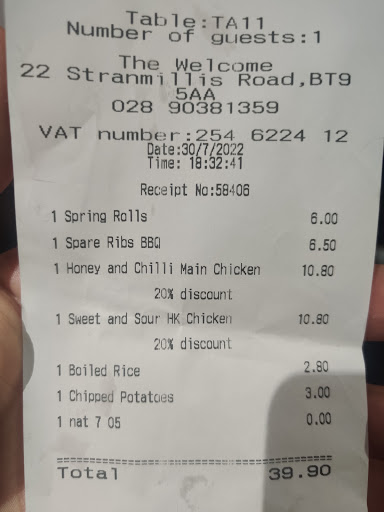 £39.90 for a 'takeaway' sweet and sour chicken, honey chilli chicken, spring rolls, ribs, steamed rice and chips (sides are also charged separately btw which I don't mind if the food is worth it). Yes you get a 20% discount on the mains but still expensive.