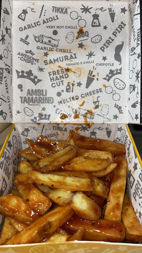 Read moreI’ve been preaching to my colleagues about how good awesome chips are, and then received their disappointing results afterwards. We got there to find there is no satay sauce, understandable as sauces can run out. Whilst ordering and waiting for our food the guy serving me was constantly giving me dirty looks when I asked for little things such as a bag for my colleague. I saw the guy put sauce just on top of the chips, here’s me thinking he’s adding extra sauce for me… I opens the box and further down as I start eating there was just dry chips and confirmed that sauce had just been put on top. The guy said he had added Cajun spice but clearly didn’t add as much as he should have for a large box of chips. £9.30 for chips that I could’ve got at the chippy and put mayo and spice on myself with better service. My colleague experienced a similar issue she thought she ordered peri peri powder with garlic and melted cheese on her chips. But there was no melted cheese and minimal sauce. There were 5 of us to witness these issues. Another colleague had asked for melted cheese on hers but received cheese sauce instead. The other two orders appeared fine but was not happy with the level of appalling service. I would also like to add that during our order every time I looked up as a number was called out the guy would consistently say with attitude “yours is number 10 love”! He said this about 3 times each time displaying more and more attitude. Didn’t realise it was an issue for me to look up ?!