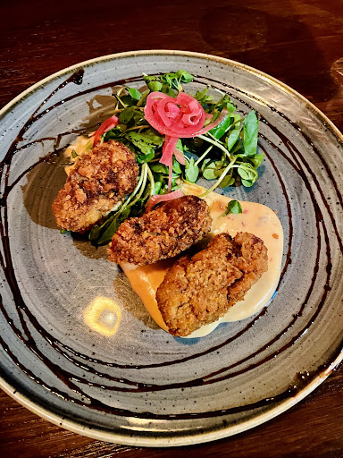 Located in the Burlington Arcade in the heart of Birmingham you descend down a fight of stairs into the most over themed, ostentatiously decorated pub you have, and will, ever experience. Is this a negative? No way! The venue is cozy and inviting and has lots of little nooks and crannies where you can secrete yourself for an intimate dinner or relaxed drinks with mates.