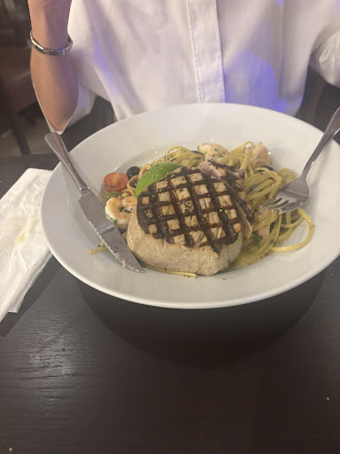 We went to Basilico on a Saturday evening a couple of weeks ago, without a booking, but the restaurant wasnât too busy and was able to cater for us. We were both tempted by the specials. I had a tuna steak dish which came with king prawns, capers, olives and cherry tomatoes on a bed of linguine and with a touch of lemon, garlic and cream. My husband opted for a veal dish which came with peppers, onions and tomatoes, and a side of potatoes and vegetables. Both meals were outstanding. My tuna was a very large juicy cut, cooked medium/rare so it retained juices and was very meaty. Combined with the prawns it was a very filling dish and incredibly tasty. My husband said his was beautifully cooked â the veal was flame-grilled so the meat was tender and juicy â and the accompaniments levelled up the meal.