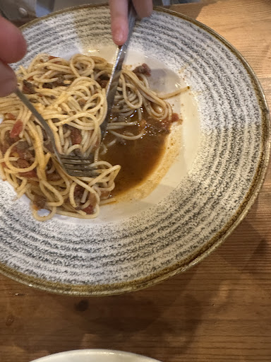 Read moreI have never in my life left a bad review for a restaurant but the service we experienced was so bizarre and rude. The man that served us (we assume was a manager, sounded European, brown hair) acted like we had personally insulted him by coming out to eat. When I informed him I had a nut allergy while ordering he acted like he wanted to fight me - it was strange that he had such a hostile reaction considering he works at an establishment that serves food and has a sign at the door telling customers to inform their server of any allergies. When my food arrived it didn't have any allergy safe flags etc. which are part of their allergy procedure. The food all arrived promptly and tasted fine but the waiter ruined the experience entirely. We were baffled as to how someone with such an aggressive demeanour and complete lack of manners has made a career in hospitality? Obviously it can be a very stressful and tiring job but the way he acted was objectively rude. We asked for tap water at the start of out meal, it still hadn't arrived 2 hours later - but at that point we were too scared to ask him again. He was so unbelievably rude taking our order that we actually watched him interact with the tables around us to see how they reacted, and we couldn't help but notice he was a lot more smiley, joking around with the white customers. The other members of staff seemed fine and were friendly when bringing us the bill - we can only hope for their sake that this manager is nicer to his staff than he is to his customers! Luckily we are able to laugh at how odd this dining experience was, as his behaviour was so rude it was almost comical. Fingers crossed he was just having a bad day and isn't like that...