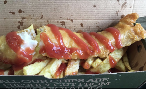 Chippy chips were nice and fresh. 6" pizza with 2 toppings, I think he put too much cheese on top which made the pizza hard or it was just over cooked Wasnt enjoyable, Fish fillet burger, dont get it. The white chocolate doughnut its was fresh and soft it was soooooo nice,