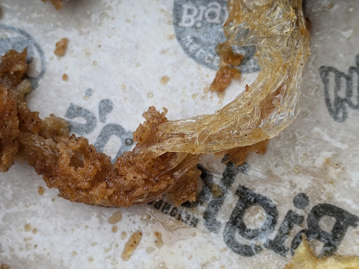 Hello, today at 1 p.m. I ordered 2 sets for 3 f, one with chicken mayo burger, the other with wings, in my wings I found plastic foil embedded in the breading. At 4 o'clock I returned to the premises to get a refund for one set which I threw in the trash. I showed the staff photos of food with foil and I wanted a refund of my 3 pounds, I was refused, I was offered the same food again, but I'm disgusted to eat at this place from now on, the boy who was working in the kitchen at 1 o'clock was standing at the cash register at 4 o'clock and laughed at me when I asked about the manager, I asked for his name, he refused to give it to me for the first time in my life, I encountered such rudeness, the same guy didn't see anything wrong with my order despite the photos shown, he told me to come to the manager on Monday and for obvious reasons I won't go there especially after 3 f I demand that this employee be immediately dismissed from work, otherwise I am submitting an application to the council and relevant services to inspect this premises, the worst branch I have ever been to, I am very dissatisfied with the food, occupational hygiene, and the staff working there. I intend to leave negative opinions on every possible website. and report...