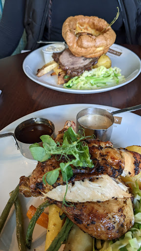 Ā Ā Ā Read moreOur first visit here, and it was for a Sunday lunch. Unfortunately the experience was a bit underwhelming, possibly more so as I was really looking forward to it. It is popular so we booked well in advance. On arrival we had a nice greeting but apparently there were only three tables available one under the clock which felt as though it was in a busy alleyway, or one of two right next to the entrance doors. We chose the latter but this was in a draught made worse as they had the inner doors held open by a cabin hook, why, especially on a cold day. The tables for two are also quite small. Our waitresses were engaging and very pleasant. The food did take a bit of time to arrive but no matter. When it did it looked nice enough apart from the beef that resembled a very well done minute steak, and therfore unsurprisingly on the tough side. The roast potatoes and veg were well cooked but there was only a quarter of a carrot and it seemed padded out with cheap greens. A large 'frozen' Yorkshire pud and a silly little pot of gravy (you will need more) finished the offering. When she collected the plated, we did tell the waitress about the beef but didn't want to make a big deal about it, surprisingly she said that another table had also complained, I love her honesty. The wife finished off with creme brulee, you can't go far wrong with one of those. The/a manager knew about the beef and was also apologetic which was reassuring. I then suggested they leave the doors as they were designed for but I got an unintelligible reason why they were open. Then I mentioned that there were at least a dozen tables that were not occupied all the time we were there, and were well away from the doors. When I suggested that these would have been more comfortable, she said that they was reserved but were 'no shows' which I found unlikely given the number of them. It's not cheap, it felt very corporate and feel it should have been better value...