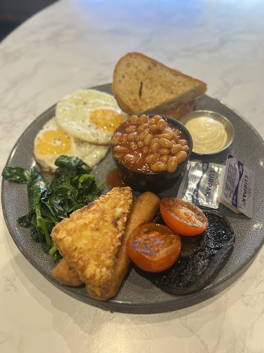 Read morePlace is lovely and very welcoming. Lots of seating upstairs and downstairs. Been many times now and always manage to find a seat. Kids area in the back, the kids are entertained with toys colouring and books so gives us time to enjoy the food cakes and coffee. Coffee is always spot on, hot and smooth like we like it. We get a large flat white so extra shots. Or the double espresso board which comes with some cream and cute mini cookie. Cakes are fresh made and always amazing. Cappuccino cake is a favourite while the kids like the cinnamon rolls and Reese's cake. Food can take a bit of time but that's because it's cooked fresh and can definitely tell. Their caramelized onion and goats cheese salad is amazing. Halloumi fries always well cooked and fried eggs on toast delicious as well. The fresh sourdough really makes all of their meals that much better. Staff is always friendly and helpful. Some people say it's a bit pricey but you get what you pay for and I rather pay slightly more for freshly baked bread and cakes, fresh veg and food with amazing taste and a lovely atmosphere. Price seems more than reasonable to me especially on harborne high street when across the road a mediocre pastry that wasn't even cooked through at...