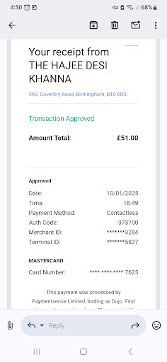 This is what happened. Around 5 I placed an order via uber eats from The Hajee Desi Khana. A few minutes later I phoned to make a change to the order and was told their uber eats was down and I was to contact uber eats for a refund. Uber eats don't have a phone contact so I left a message on the app. To my surprise I kept getting notifications that my order is being prepared. I phoned the restaurant to tell them this and they confirmed their uber eats was down and they have not received any order from me. I went back on the app and messaged them again. After about 5.40pm I kept getting notifications that my food delivery was on its way. I called the restaurant again and they said it's not so because their uber eats is down and they have no uber eats orders from me. However this kept happening and I kept replying to the app that no delivery has been made. At 3 mins to 8 I get a notification asking me to enjoy the food delivery. There was no delivery. I wrote the details on their app again. I called the restaurant to be told they are busy and to call back in half an hour, when I called them they were too busy and took my number to call back. I am gonna leave it at that. I will speak to my bank in the morning to get my money refunded back to my account and I will never use uber eats again and never order anything from The Hajee Desi Khana Restaurant as both Uber Eats and The Hajees Desi Khana have given me the run around as I have been going in circles trying to sort out their mess since 5pm and...