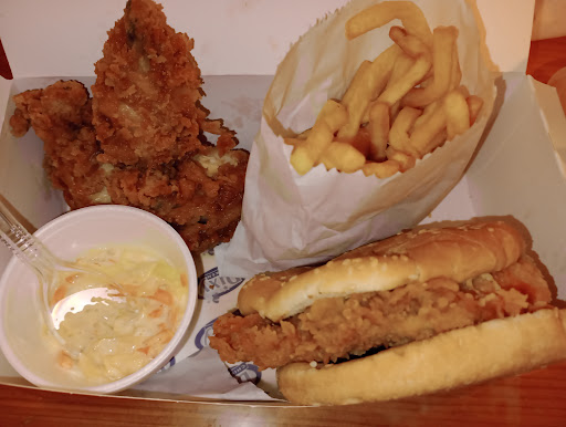 Read moreThe batter on the sizzler wings tasted undercooked. Overall the sizzler box meal was value for money. Burger and coleslaw were nice, drink was cold, fries were average.