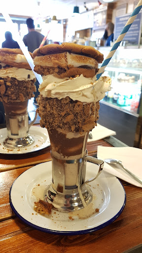 No offence to Small Heath, but it's unlikely to appear at the top of many bucket lists. However, a visit to Eis Cafe is definitely worth it. Situated 10-15 minutes walk away from the train station, it looks like a normal cafe on the street. Inside though the decor is really well thought out and is well designed. We made the journey to sample a loco-shake having seen them on social media before, but before our calorific overload, we thought it best to have something savoury. There were only a couple of sandwiches on offer but the fillings were varied and as they are served on forcaccia bread they feel different from a lot of standard offerings. The selection of deserts and combinations was mightily impressive and I'm pleased that we'd set out to have a loco-shake else choosing one style of dessert might have been difficult. They've clearly got a lot of ideas and flavour combinations. We went for a cookie special loco-shake and it was delicious; I'm not sure I'd have too many more in the future but was a great experience. The service was very friendly and the guys serving looked to be enjoying taking the orders of customers and seeing their reactions when the items were made. Service is not instant, but that's because they've got to make it all and that wasn't a problem for us .
