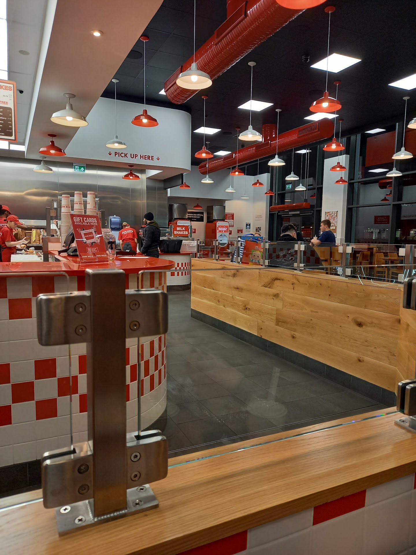 Read moreExtortionate prices for what you get. Close on £8 for a hot dog which was about 6” long and the sausage was cut in half😩. The hamburger we had didn’t taste of anything it could have been mashed up cardboard and the fries were served in a paper cup and were so dry I couldn’t eat them. We spent £27 altogether and in my opinion a complete rip off. I have never eaten food as bad as that and to top it all the ambiance was cold with the sliding doors opening and closing every few seconds when anyone walked past. The decor was like sitting in a public convenience. Sorry but Five Guys must be the worst of the fast...