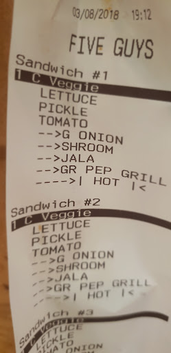 As a vegetarian you need to opt for the 'veggie sandwich with grilled cheese'. The name is deceptive. It's actually a hot burger bun with grilled mushrooms tomatoes onions lettuce with optional pickles and jalapenos with spicy hot sauce. Fantastic news, they don't charge you for optional extras so go wild when ordering.