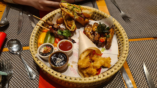 Read moreGiggling Squid was AMAZING! It was mine and my boyfriend's 5th anniversary and so we wanted to go somewhere different and try out a Thai Restaurant and this had great reviews and I liked the look of the menu/restaurant. I did make a note when booking that it was our 5th anniversary and asked if we could have some nice seats if available. The car park is easy to find. When we arrived we were greeted by a friendly member of staff, they did intend to seat us in their birdcage however it was booked out and we sat on a table near a flower wall which was still just as pretty I didn't mind though. The waitresses were so nice and attentive, especially the lady with red hair which I regretfully didn't get her name. She had a great sense of humour. We tried many cocktails, the Matcha-Tini was my favourite and the Hammock Daze was my bf's favourite. The manager even came over to say hello, and offered us our first drinks on the house due to the birdcage not being available which was so incredibly nice of her to offer. We did decide on the sharing platter, and asked if we could change the vegetable spring rolls for duck ones and they did (at an extra charge - worth it). The food was so so so good, and our favourite was the chicken wings. And then we picked the turmeric sea bass parcel and rising star red duck curry, again the flavours were exceptional. Sea bass perfectly cooked, and the duck was super soft. We got egg fried rice and stir fry noodles on the side. The portion sizes were a good size, definitely worth the price. And for dessert we picked the mango cake and chocolate lava dessert, and the staff very kindly wrote happy anniversary on my plate which was a lovely touch. Overall, the food was delicious, lots of choices from the menu including drinks and the service from the staff really helped make our evening special for us. 10/10 recommend you go there. Thank you :) we look forward to coming...