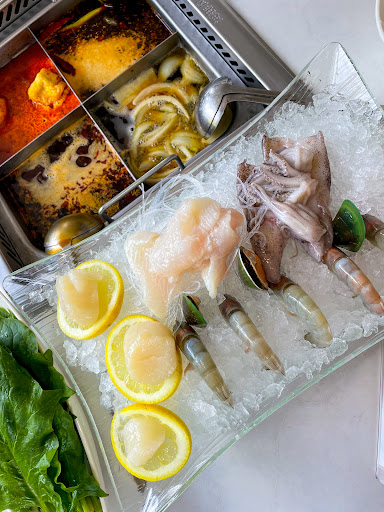 We ordered the quarter pot with 4 soup bases, me like an idiot ordered the one that was super spicy I couldn't handle it but the flavour was actually so good. All the bases were flavoursome and you could then add your own seasonings from the seasoning table. They had everything, tissues for runny noses from all the spice, lens wipes for when your glasses steam up, it was great.