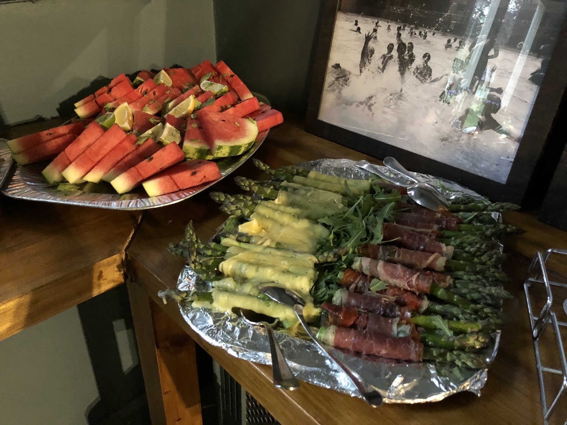 We usually sit on the green but sat in the garden this time. First time doing so this summer - a lot of work has clearly been put in to make this a peaceful, enjoyable space. Herbs in pots on each table are a nice touch, albeit in need of watering.