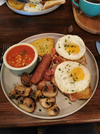 Read moreThis place does lovely coffee and cake. The cafe itself is really well done out and the people are lovely. The one thing that lets it down is the food. I had a breakfast and unfortunately it wasn’t very nice. All seemed to be very cheap ingredients which is disappointing when you have a butchers opposite. Greasy streaky bacon (had to leave it), toast was hardly done and what tasted like cheap frozen sausages. Menu is a bit confusing, seems like everything is a take on pizza but put in a sandwich of some sort. They need to simplify, go sample the breakfast in Pit Stop, which in my opinion is better and cheaper. See what the other cafes are doing. Offer something different like avocado and feta or egg on toast. There is a fruit and veg shop opposite. They could use the fresh local produce and just buy what they need. If they sorted that out they’d have the best cafe...