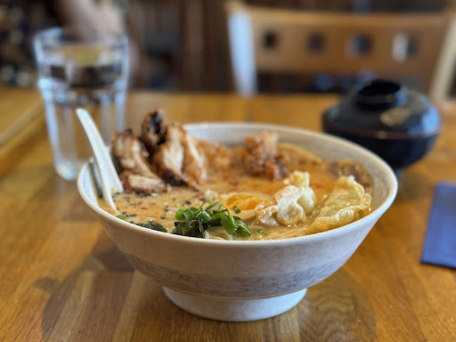 I had the Chicken spicy tonkotsu ramen with added pork belly, and was blown away first by the portion size. This food meant business. The proportion of protein to noodle to broth is perfect, and you get two veg gyozas pierced perfectly on the top of the dish not to get soggy. My friend had the prawn ramen tonkotsu style and not only were the prawns huge, they were clearly fresh before being panko fried.