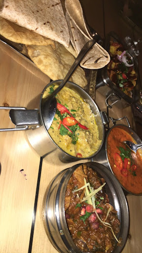 The decor in the restaurant was lovely. certainly out of the box type thinking when this was designed, the staff were friendly enough, however it felt like they were used to a script in telling people the best way to order from the menu, 'order 3 courses and share', nice to have their thoughts but I think what most people would want to know is how big are the portion sizes, do we need to order additional items and what do you recommend. The rotis were another disappointment, not the usual fluffy puffy flat breads that I'm used to and also what you'd get in India from street food vendors freshly made these seemed pre prepared, very dense and flat.