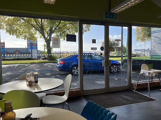 Recommended by the mechanic who MOT'd my car. I never knew this place was here and I live local. It looks small from the outside but it was quite roomy. Large, clean tables with loads of room so people won't knock you. My table was spotless as was the cutlery and conderments, when customers left the staff came out to clean and clear very quickly. All the staff were polite, chatty and helpful and brought your piping hot food to your table. The food was very good and cooked just right and there was plenty of it, it is also cheap. There is a fantastic variety of choices of both food and drinks, they served three sizes from children's to large meals, they were also happy to do add-ons or leave things off for you, they were happy to do dietary requirements if needed. They not only served in house but phone a head takeaways, walk in takeaway and they delivered too. The place was very busy, a constant flow of takeaway custom and tables were in constant use. A lot of workmen stopped and many were frequent users as there was some good banter between them and the staff but there were even a number of young children and families who gave it a great atmosphere. There is a small car park at the front but I couldn't see any disabled spaces. There were also toilets but I never used them so I can't describe them to you. I've used them a couple of more times since then and my experience has always been the same. This place is a gem. PS, the car...