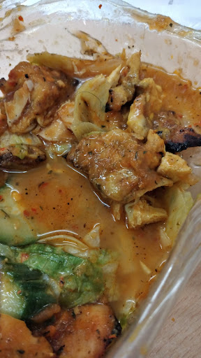 Absolutely disgusting and it's clear that there are no hygiene standards. This place is dirty and it has totally put me off eating Pepe's now. I will definitely not return to this branch. I was almost sick when I saw this in my salad at work the next day; it was mixed in and at the bottom with the sauce so there is no way that it was mine. I could not eat anymore and had to throw it away.
