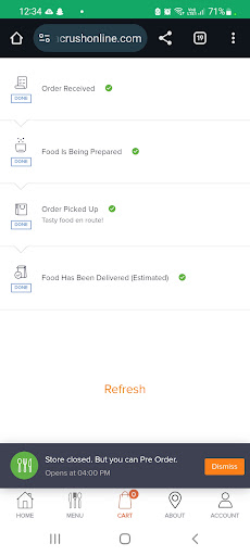 It's time ordering from there yesterday. I was told half an hour waited over one and half hour 3 phone calls to them guy on phone was not very professional and told me guy who took order had gone home and he was sure I was told half hour to 45minutes...this was not what I was told I heard him speak to someone else and ask him what he had told me if he had said half hour or half hour to 45mins..then he told me on the phone that the other guy said he did tell me it was 30 to 45mins waiting time... No he did not say anything about 45mins at all. Amazing how I was told guy who took order had finished his shift and gone home...must be a miracle as he was still at the pizza place to inform the 2nd guy that basically I was lying about not being told about the 45 mins waiting time. If you going to lie at least make it a credible lie! Then he went on about his other 24 orders how he only works there it's not his fault I've got to see it from his point of view.and cant I come pick up my order....I dont drive and I have a mobility issue too...so no I cant . Then told 10 mins ..that went past ..eventually I got my order..my 11year old had to wait with me ..I did say if order wasnt dropped off soon I wanted a full refund. When order did arrive pizza was lukewarm and fried were cold...so not a great experience and I was very insulted as I was made out to be a liar and I was also lied to regarding the 1st guy having finished his shift and gone home ..as he obviously was still working there. Found the 2nd guy on phone very rude not good customer service.. Will not be using them again and will stick to local pizza shop oven and grill...as they deliver on time are always polite and helpful and the food is always very warm. So thankyou pizza crush but...