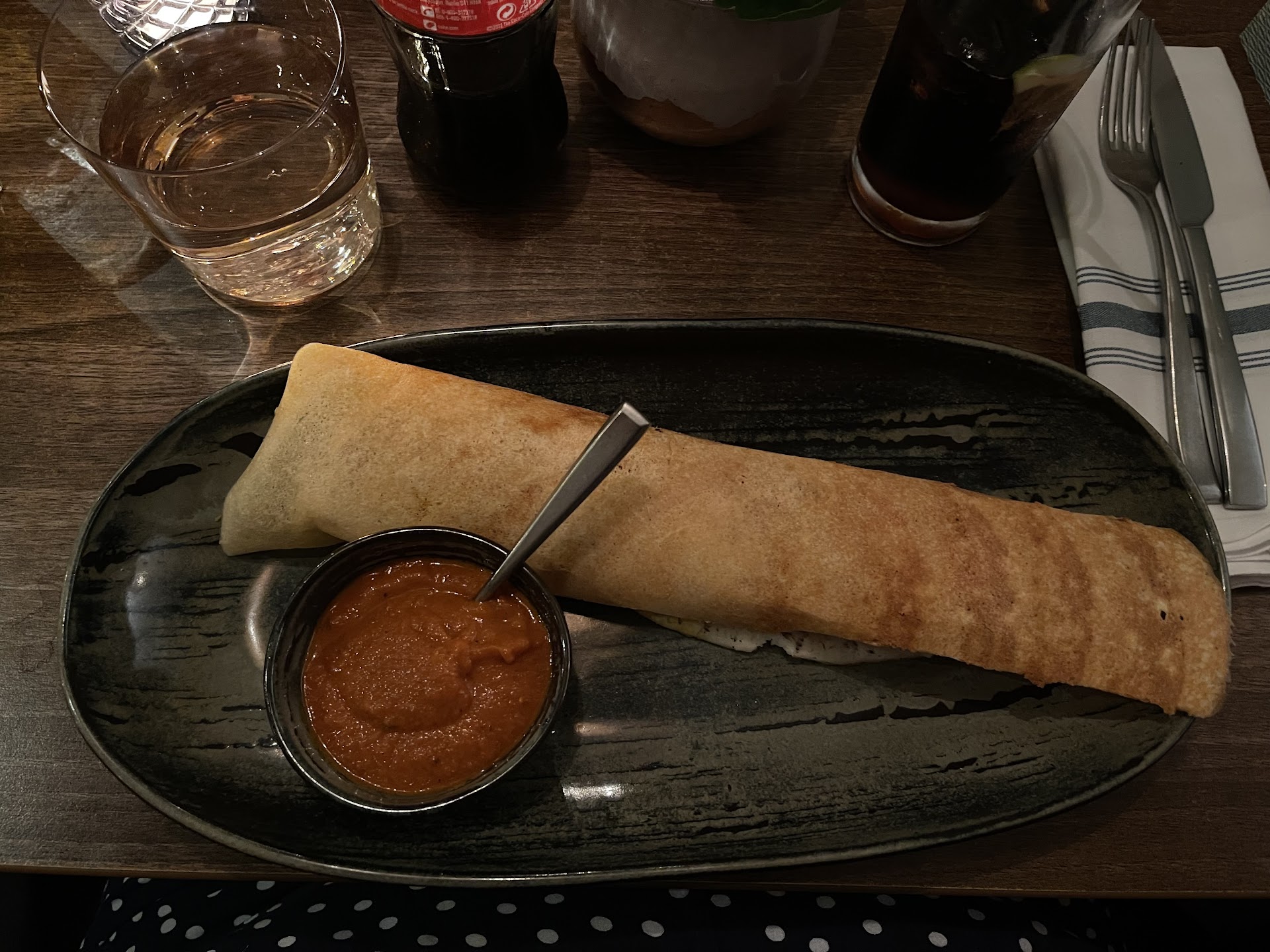 The starters; Dosa, Tandoori chicken & Shimla prawns were a treat (as usual). Cooked to perfection & highly recommended!
