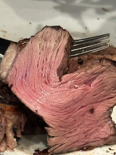 By now there was a significant amount of meat building up on the side of my plate that was simply inedible either because the knife couldn’t cut it, it was mainly fat and gristle or is was cooked to within an inch of its life and like leather.