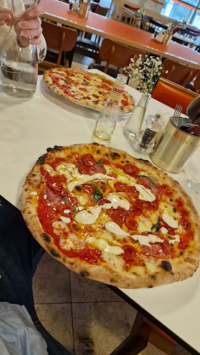 We dined here last bank holiday weekend in the evening. Firstly the pizzas were larger than the plates?! Obviously because the crust hangs off the edge, it’s impossible to cut with the pizza cutter. The table we sat on was dirty, so asked for it to be cleaned. It should have been done once the last diners left?! What’s up with the wall on the right side of the entrance to the restaurant?! Looks unfinished! It was like that the last time we dined here, nearly a year ago! Then I witnessed the lady making my drink, put her hands into box of mint and then fully put her fingers in my drink. She saw that I had seen her do this?! Are there no utensils for this?! Quite disgusting!!