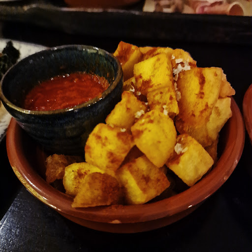 We selected 7 tapas - they ranged from poor/average to outright awful. The meat/ shellfish plates were particularly bad - we left some mussels, chicken from the paella and meatballs; I NEVER waste food, and always get takeaway boxes. We persevered, eating the bearable bits, deciding to pick up something from COOP on the way home rather than make a fuss. The waitress was lovely, asking if everything was alright with our food when we requested the bill. We must have looked hesitant, as she assured us we should tell her if we weren't happy. I expressed that I hadn't wanted to finish the meatballs, or my partner the mussels, and gestured to the unfinished paella too. I suggested maybe just the meatballs could be taken off the bill, as she was extremely apologetic and wanted to improve matters for us.
