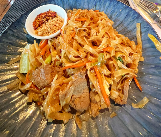 This is a photo of what my meal looked like as i was leaving the restaurant…. I ordered a beef pad thai and was very disappointed to say the least, the sauce was sour and had a strange bitter taste to it, almost as if it had gone off. To make matters worse the noodles were barely cooked and had a chewing gum like texture that was hard to get down. As for the ‘beef’…. I don’t have the time to get into the taste or texture, but it was bad. as for the service? it was worse than the food. Waiters could clearly see my food was untouched and didn’t bother to ask if i wanted a replacement or if i was finding the food okay, which i found extremely unprofessional. It was a running theme throughout the table of almost 20 that many had to ‘take their food home’ in a container because they could barely stomach it, to make matters worse, they had the cheek to charge us for the containers .. quite stingy considering the restaurant isn’t exactly cheap. at the end of the meal and after paying i went to one of the staff ( i think the manager) and told him the food wasn’t great and to my surprise he seemed personally offended and told me there was nothing wrong with the dish as if he had sat and eaten it with me? i then told him that others at the table felt the same way and he said ‘okay please move out the way i have customers’ … I then told my dad about this experience who was not even present and he called the restaurant and managed to get me a refund, quite funny how they quickly offered a man who wasn’t present a refund, but was quick to dismiss my complaints about the food, which i honestly think was down to the fact that i look quite young and he took advantage of the fact that i wasn’t putting up a fight. overall, if you’d like to ruin your day, this is the perfect...