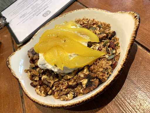 The BEST homemade Granola ... by a huge margin ... nothing I’ve had before compares to this stunning combination of flavours AND to “top it off” very luscious Bay poached Pear slices ... So Delicious!!