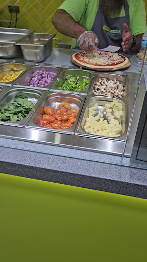 Food = Pizza's are stone baked, giving that extra kick in taste of the toppings, base was medium, not too thick or thin. Absolutely delicious! You can actually see your Pizza getting made!