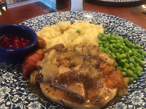 Ordered the 12oz rump very well done. The outside looked VWD, the inside middle was red with blood coming out, not good. The steak was tuff, which is the downside of VWD., the skin on the jacket potato was rock solid, and the peas were raw but warm.