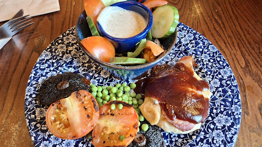 Ordered the 12oz rump very well done. The outside looked VWD, the inside middle was red with blood coming out, not good. The steak was tuff, which is the downside of VWD., the skin on the jacket potato was rock solid, and the peas were raw but warm.