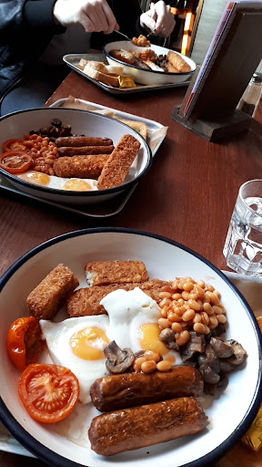 Read moreVegan breakfast was disastrous. Shame as the staff were lovely... However, those sossijizz were fuppin awful, on first attempt at a mild lateral dissection I was baffled at the 'Rhinoceros' thick cutaneous - derma-kevlar loike... Twas as if it's been frozen and thawed out twelfthty times, nearly bent the knife. Should be sent to a lab for analysis! Cold tomatoes, no vegan spread, not what I call extra beans as they're out of shrooms; just magic! Hash brown cuboids were satisfactory though and thankfully not swamped in oil. Altogether a bizarre experience. The "Chef" should be shot. Even hungover stoodents wouldn't have consumed this matter!...